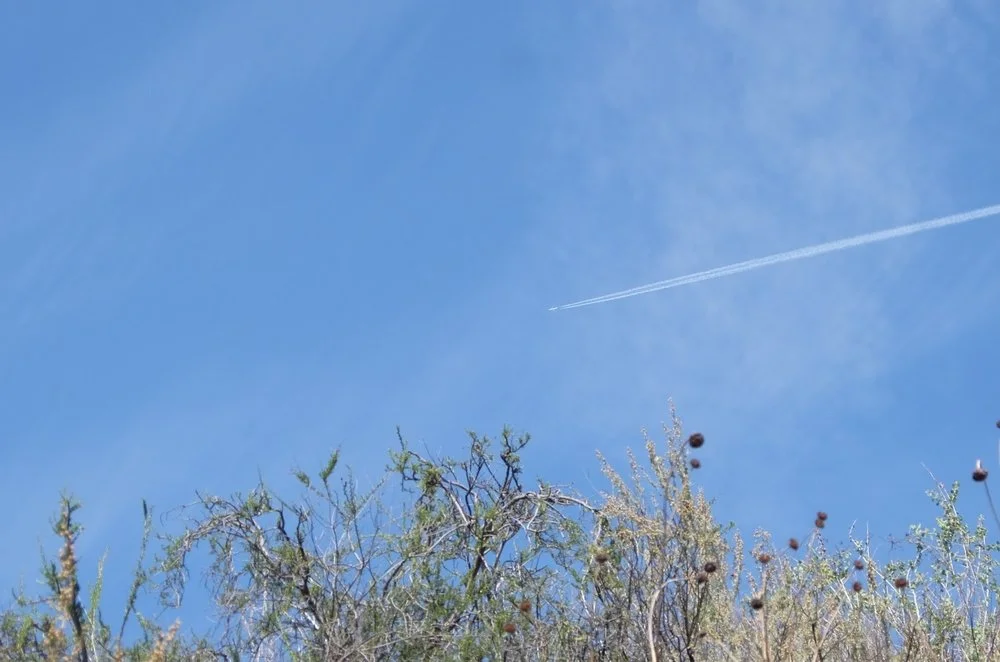 Today was a good day. On Los Pinos trail. From hot springs with 2,000’ of ups. There were a few minutes on a perch overlooking Hot Springs Canyon. Contrails overhead, and a red tail hawk soaring below. Memorable for sure. It's not often that one looks down from were they stand to watch a hawk soaring. The best of all? For several hours there was not another human soul to be seen.